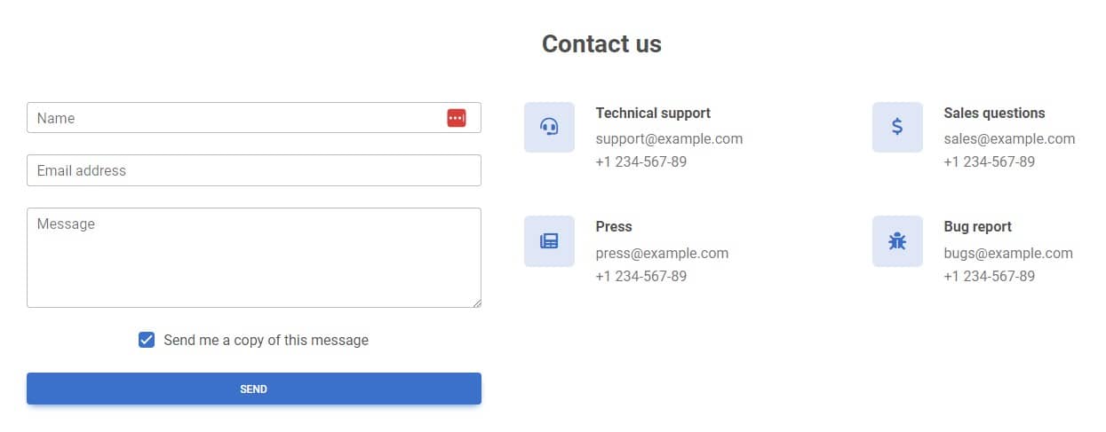 Badges are small components useful for labeling and providing additional information. We will use them to finish our contact section.