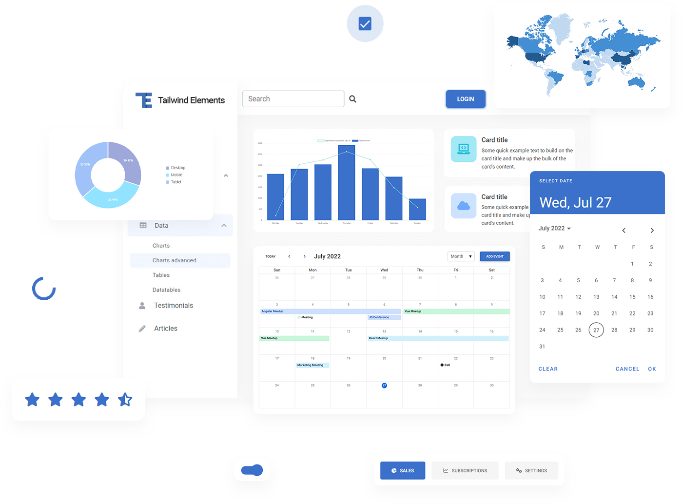 MDBootstrap has 4 versions dedicated to the most popular front-end technologies.