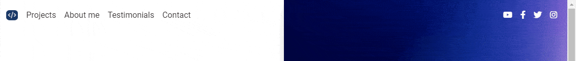 Currently, the color of our navbar is fixed. However, we, using a bit of custom CSS and JS, will create an animated navbar, which will be transparent at the start, and when the user starts scrolling, the navbar will change color.