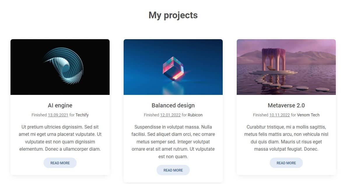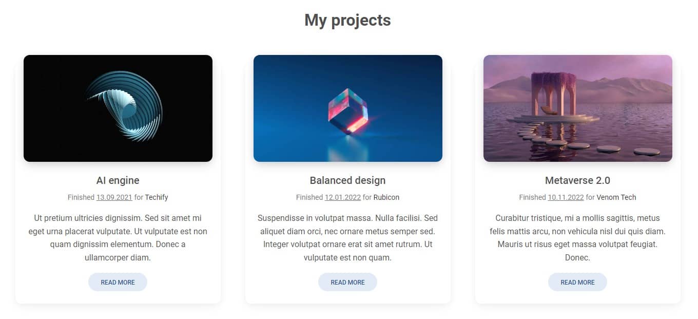 Our Split screen intro section is ready and we can move on to the next step. This time we will create the "My projects" section and add special, cascading cards to it.