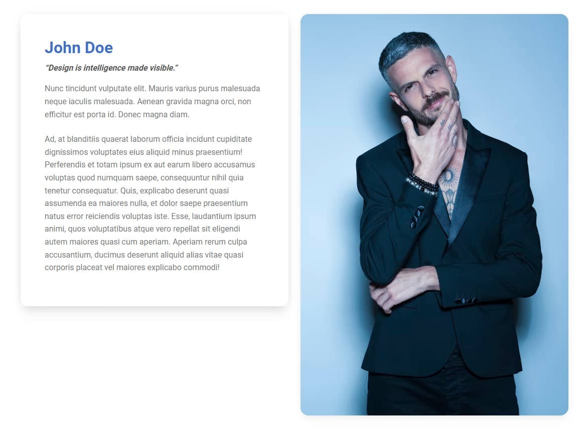 Below the Projects modals section, add a new About me section, and place a grid with two equal columns in it:
