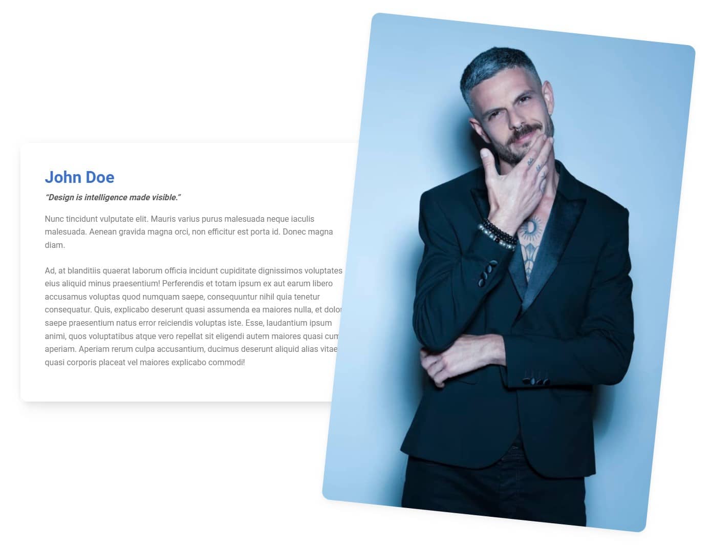 Let's rotate the image in the About me section to the right by 6 degrees.