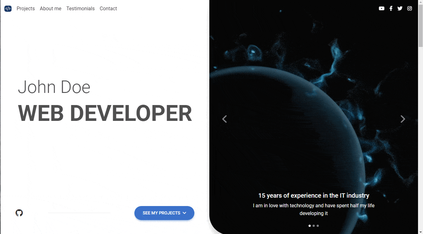 In the My projects section, let's add an animation with a delay of 200 milliseconds to each card. This time we'll use an onScroll animation to make the card appear one by one as we scroll down the page: