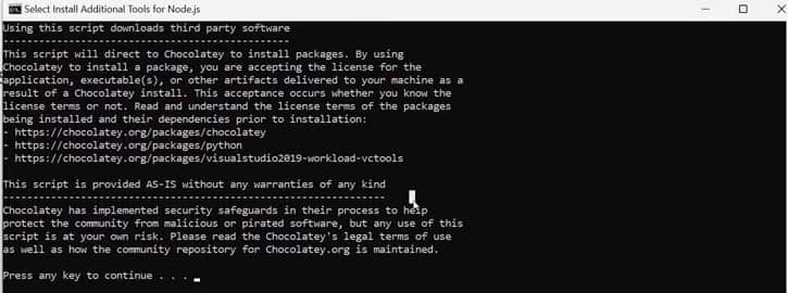After the installation is complete, you can see the terminal window as in the screenshot below. Click any button to proceed.
