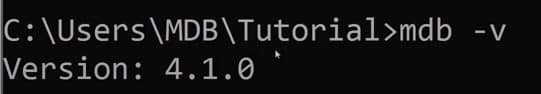 Enter the mdb -v command in the terminal to check if the MDB CLI was installed correctly. If, like in the screenshot below, you see the version number (remember that it may differ) then everything is fine.