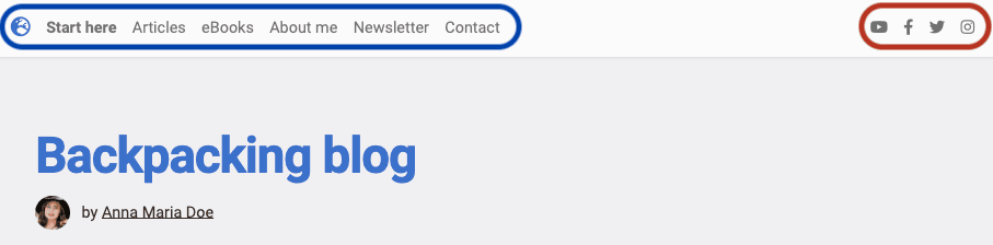 The standard and most effective communication channels are the newsletter and social media. Links to them should be placed in the navigation, for example in the navbar: