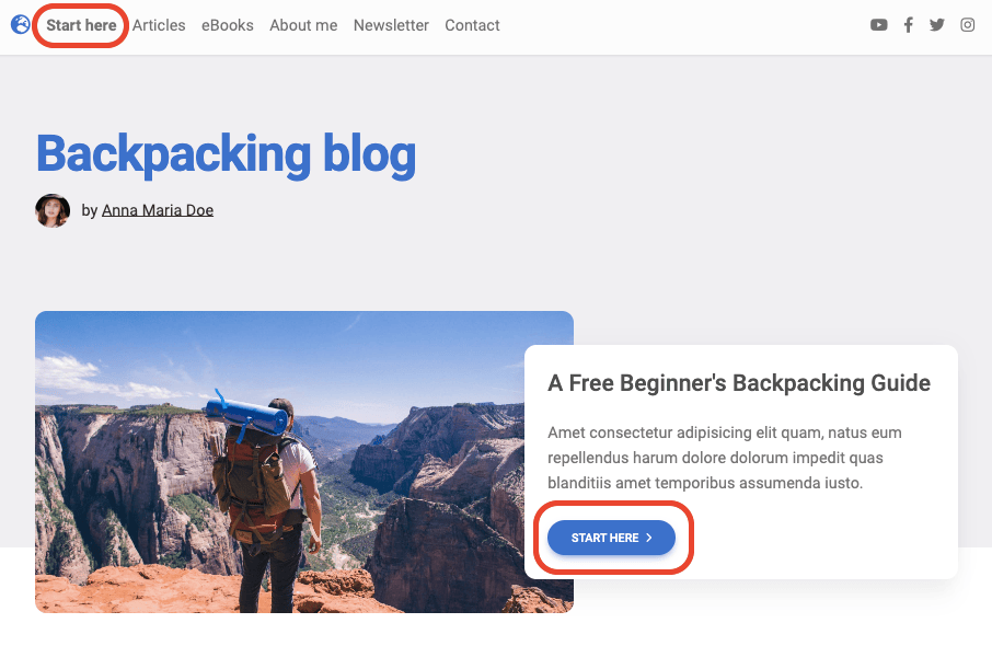 So we want them to start their contact with our blog with the guide "A Free Beginner's Backpacking Guide".