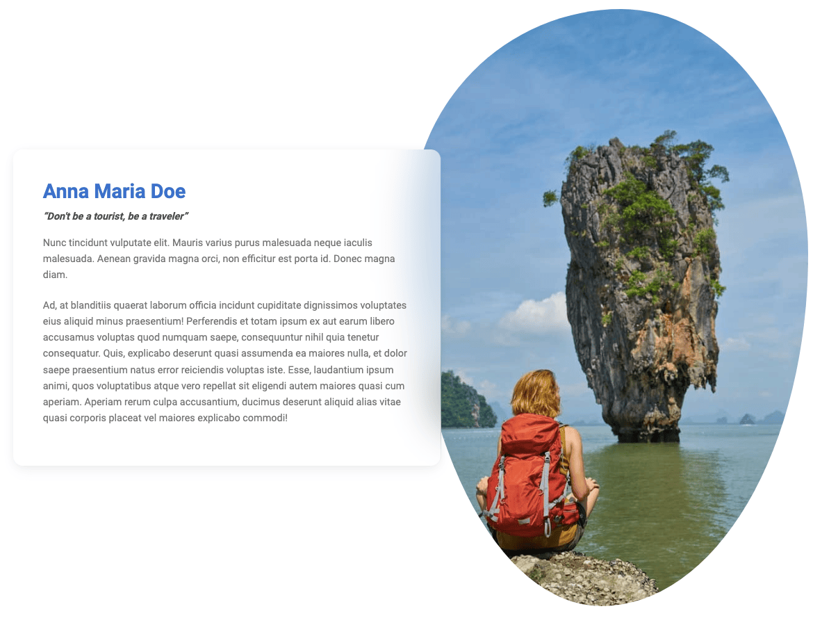 Note, that we are also adding .me-lg-n5 class, which provide a negative right margin. Thanks to this it will overlap the image in the second column and create a cascading effect.